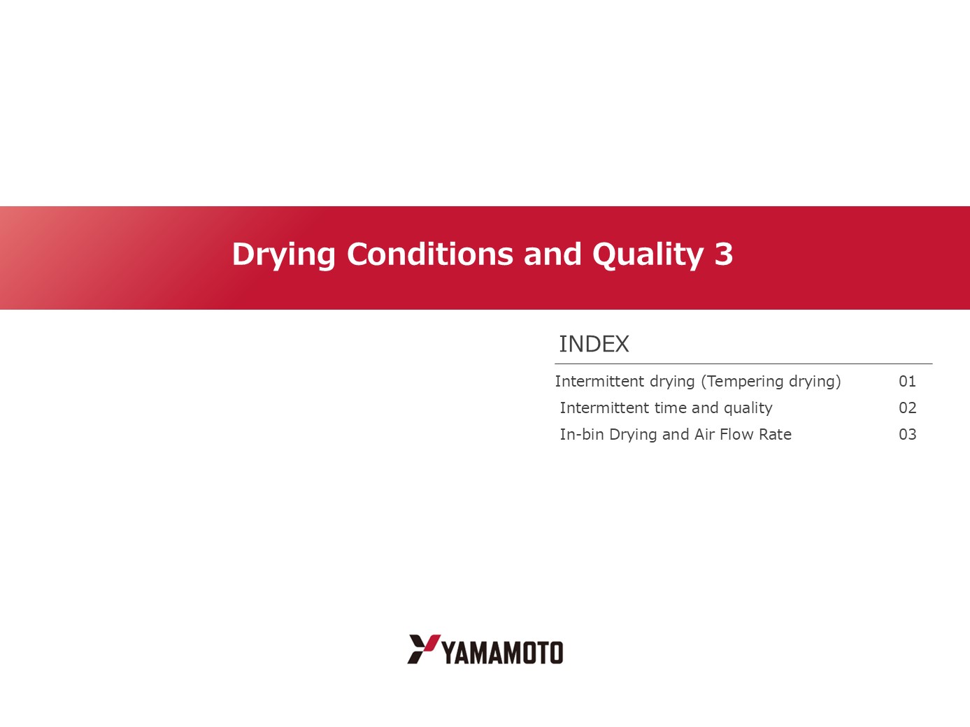 In tempering drying (intermittent drying), in which moisture in the interior of the grains is transferred to the surface as much as possible and then drying carried out again, when the drying time is held constant the drying will take place faster with higher initial moisture content, minimizing the danger of overdrying. In this sense, multi-pass drying is superior to uni-pass drying. In addition, 2-stage drying, in which rice is initially dried to about 17% moisture content, then stored in a silo until the whole harvest is completed, then undergoes finishing drying, the unevenness in moisture content among grains can be evened out during silo storage. This is also a good way to avoid overdrying.